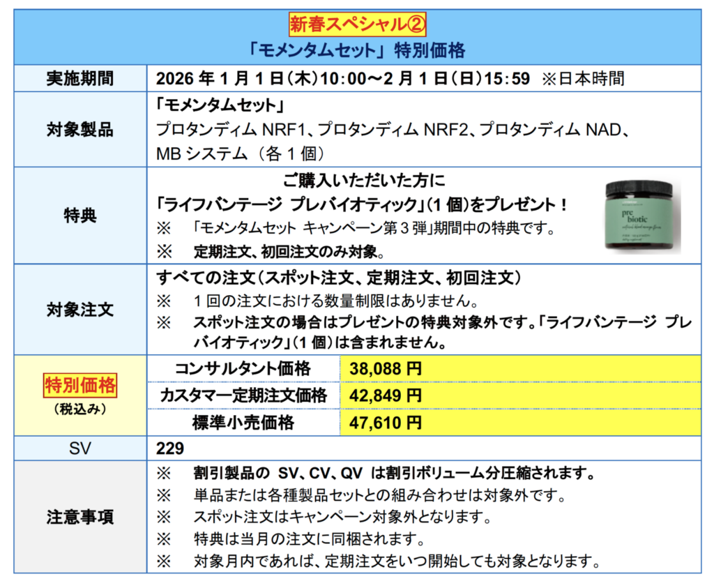 さらに、2026年の新春スペシャル企画としまして、現在大変ご好評をいただいている「モメンタムセットキャンペーン第3弾」を、期間限定の特別価格にて、よりお得にご購入いただけるキャンペーンも同時に開始いたします。